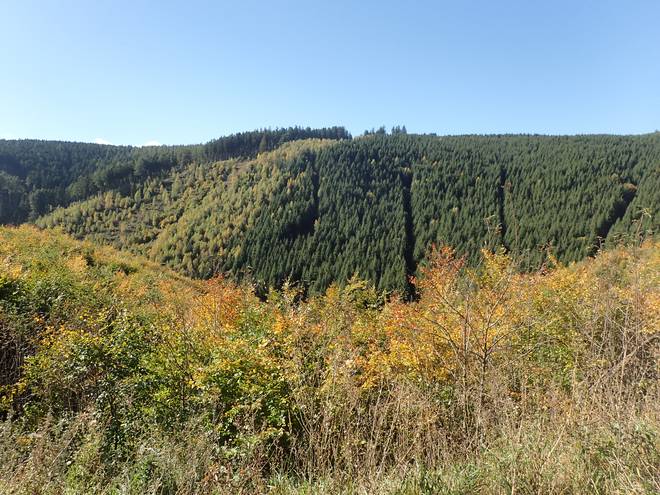 Glashüttenweg 12.17 Uhr / Km 26,2 Selten mal unterbrochen durch eine Freifläche. |