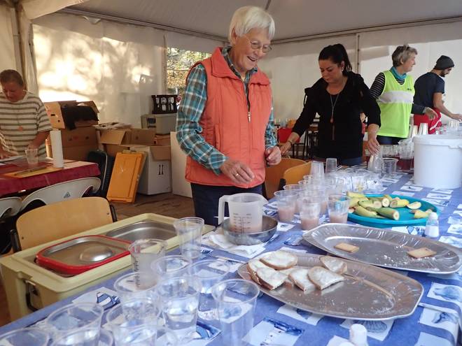 Himmelpforte 14.21 Uhr Es war ganz schön voll an der Himmelpforte. Die Wartezeit für die Erbsensuppe war lang. Das Stehen war fast schwerer als der Lauf zuvor. Aber das Warten lohnte sich. Die Suppe war lecker. |