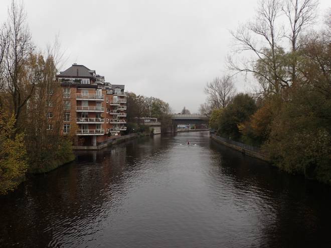 Brabandstraße Alster 10.31 Uhr / Km 5,1 Diese Strecke hier war etwas länger als die auf der rechten Uferseite. Dafür sparte ich an der Hindenburgstraße die Treppen. Da gibt es auch einen kleinen Schleichweg, aber wer hier mit Karte navigiert, der kennt den bestimmt nicht. :-) |