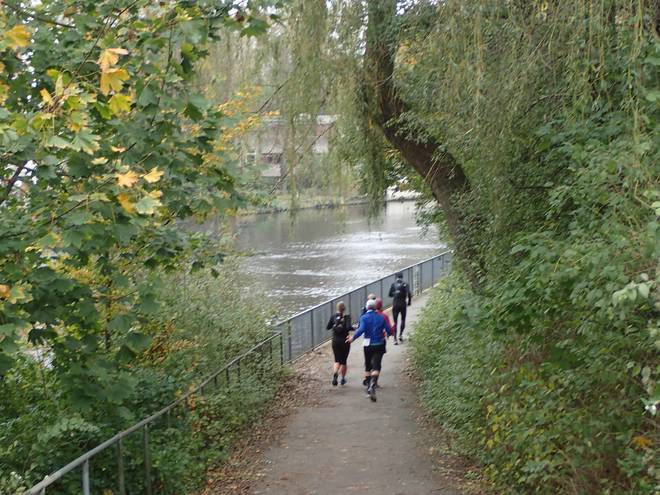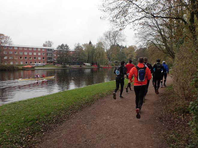 Alsterwanderweg Alster 10.36 Uhr / Km 5,9 Bald liefen wir alle wieder denselben Weg. |