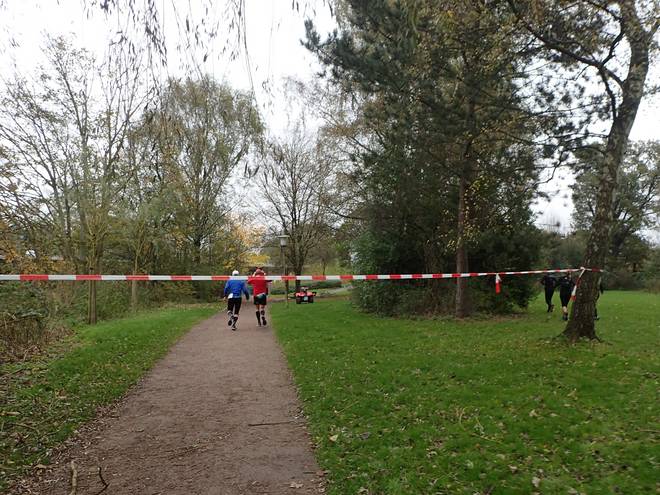 Bramfelder See 10.59 Uhr / Km 10,0 Nun lief ich alleine zwischen den zwei Führenden Rico und Tobias sowie der Verfolger-Gruppe. |