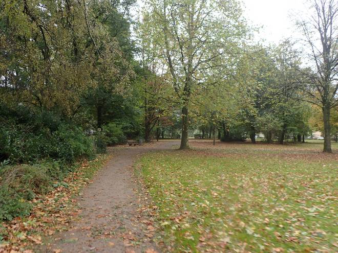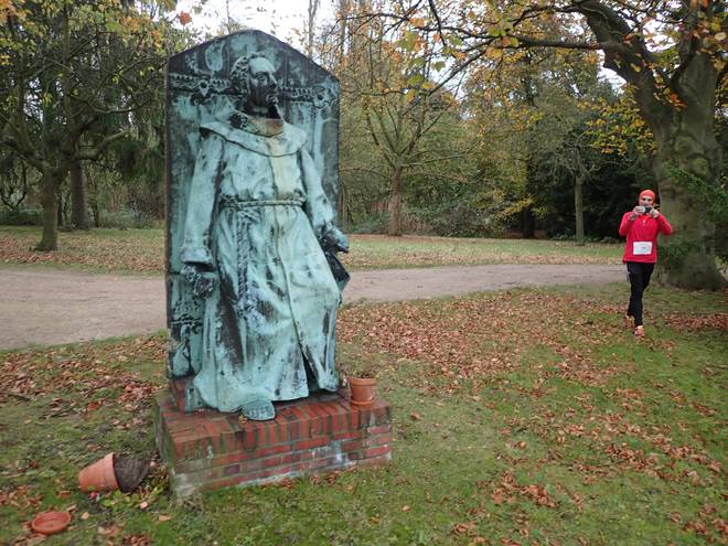 Friedhof Ohlsdorf 10.46 Uhr / Km 7,6 Eigentlich darf man nicht über den Friedhof laufen. Aber über den Friedhof führt auch einer der Hamburger Radfahrwege. Und den kann man dann wohl auch laufen. |