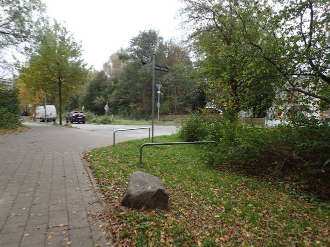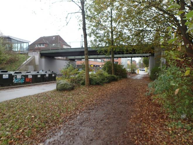 U/S-Bahnhof Ohlsdorf 10.44 Uhr / Km 7,3 Zweifelsohne kommt man über die Rathenaustraße schneller zum Friedhof Ohlsdorf, der 2. Grüne Ring verläuft aber hier durch den Bahnhof. |