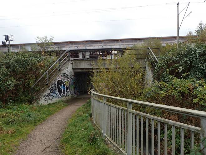 Rahlau 11.39 Uhr / Km 16,9 Hier ging es unter der Bahn-Linie Richtung Lübeck und Skandinavien unter durch. |