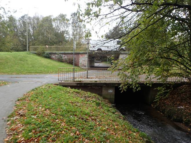 Schleemer Bach Billstedter Hauptstraße 12.33 Uhr / Km 25,8 Wir unterquerten nun kurz hintereinander die Billstedter Hauptstraße und dann die B5 (Bergedorfer Straße). |