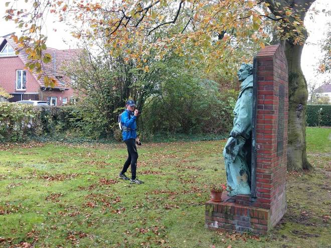 Bei der Lutherbuche Christ-König-Kirche 9.42 Uhr Aber dieser Ultramarathon war ein einmaliges Event zum 500. Reformationstag, da konnte ich auch nicht fehlen. Also hin und es versuchen. Für die 47 Kilometer gab es 8:30 Stunden als Limit. Im Notfall konnte ich das auch wandern. |