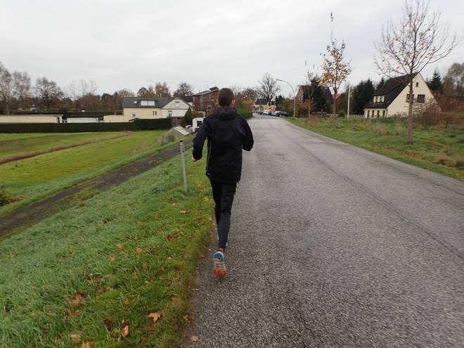 Immenhof 14.46 Uhr / Km 47,0 Die letzten paar Meter. Kurz vor der Ziellinie war noch eine Straße zu kreuzen. |