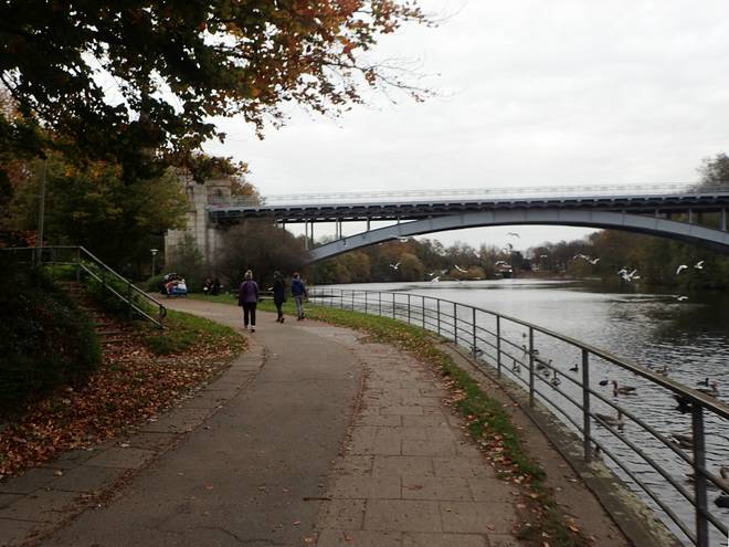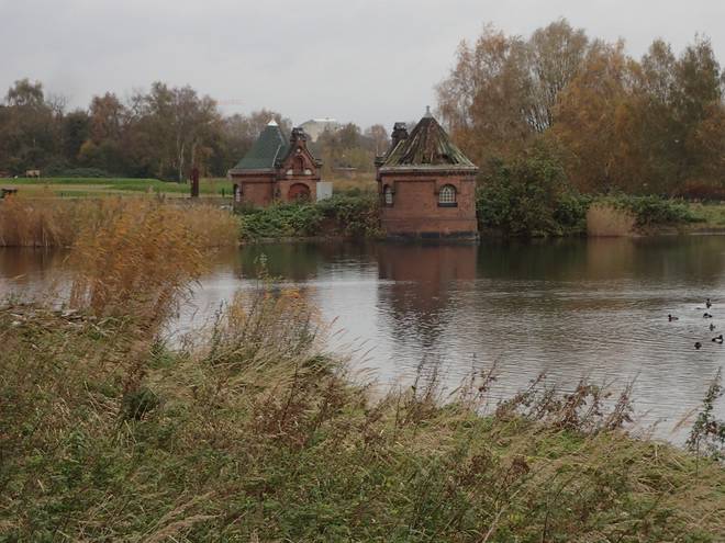 Kuhmühlenteich 14.45 Uhr / Km 46,9 Jetztmußten wir nur noch unter der Brücke der U-Bahn durch und dann sollte das Ziel schon in Sichtweite sein. |