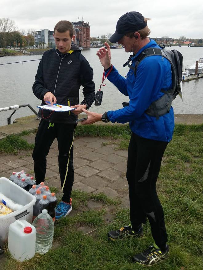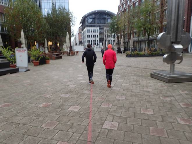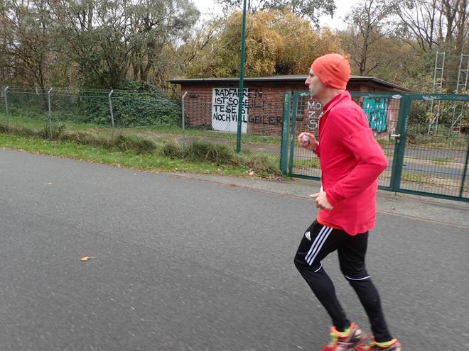 Fleethof 14.22 Uhr / Km 42,9 Mit roter Linie läuft es sich doch gleich viel besser. :-) |
