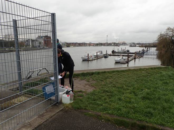 Kaltehofe Hauptdeich Billwerder Bucht 13.33 Uhr / Km 35,9 Wir trugen uns in die Liste ein und fielen über die Getränke her. Foto: Tobias |