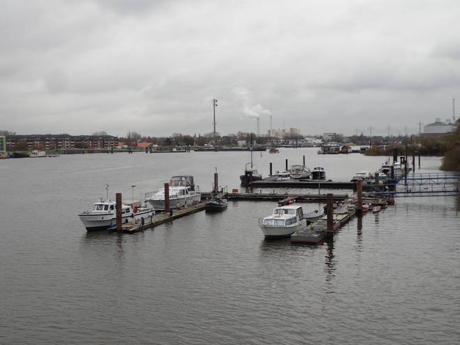 Billhafen 13.49 Uhr / Km 38,0 Für heute fiel die Revolution aus, also konnten wir weiter laufen. |