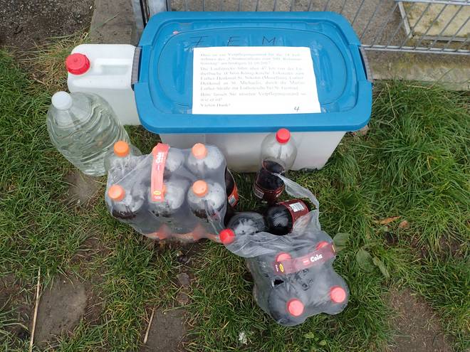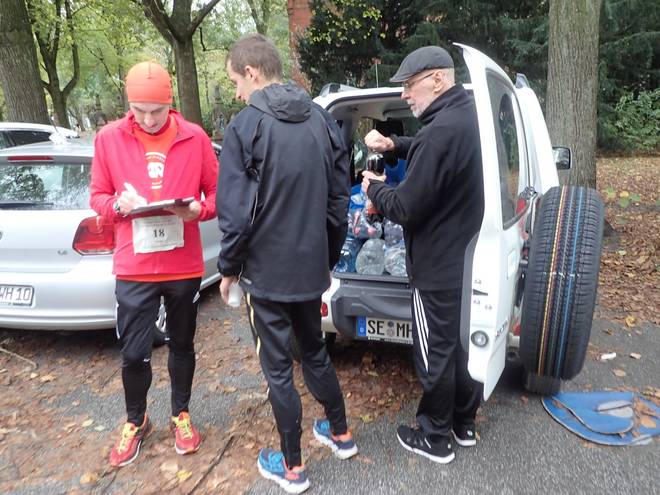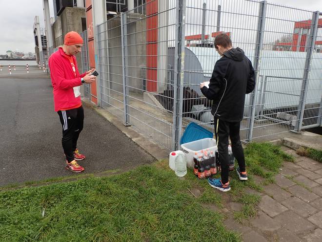 Kaltehofe Hauptdeich 13.35 Uhr / Km 35,9 Der Verpflegungsstand hier und der in Moorfleet blieben von Unbefugten unangetastet. Der in Ohlsdorf wurde von Vollidioten geplündert. Den Leuten ist auch nichts mehr heilig. |