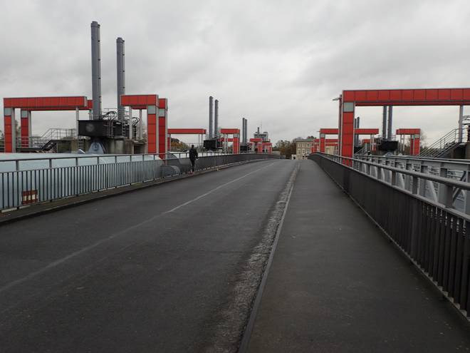 Hochwasserschutzanlage Großmarkt 13.54 Uhr / Km 38,9 Und hier am Großmarkt. |