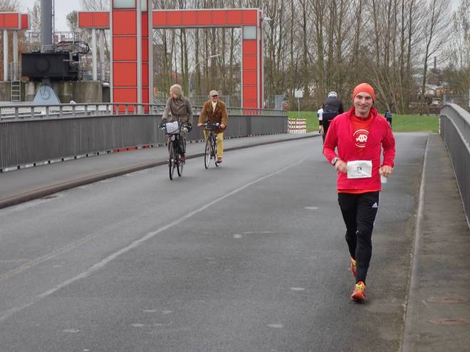 Schwanenwik 14.42 Uhr / Km 46,3 ... aber dann hätte man sich um das Vergnügen gebracht, hier nochmals bei Rot über die Straße zu laufen. |