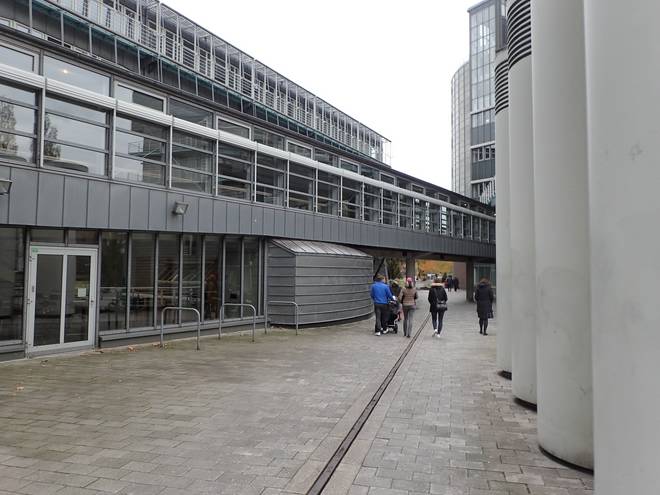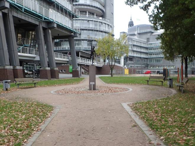 Deichtorhallen 14.01 Uhr / Km 40,1 ... und hatten die Ruinen des alten Spiegel-Hochhauses vor der Nase. Vier Stunden Laufzeit und knapp über 40 Kilometer geschafft. Wir waren wirklich gut unterwegs. |