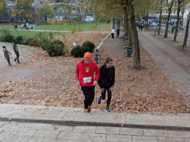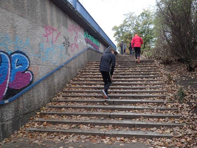 Michelwiese 14.14 Uhr / Km 42,2 Oh je... Treppen. Die wären aber nur schwer vermeidbar gewesen. |