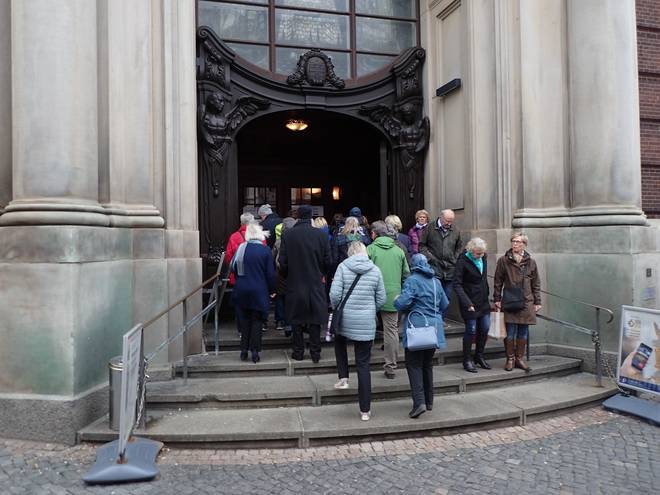 Hauptkirche St. Michaelis Englische Planke 14.15 Uhr / Km 42,3 Allerdings war hier an dem Tag ohnehin schon reichlich los. Da mußten wir nicht auch noch mitmischen. |