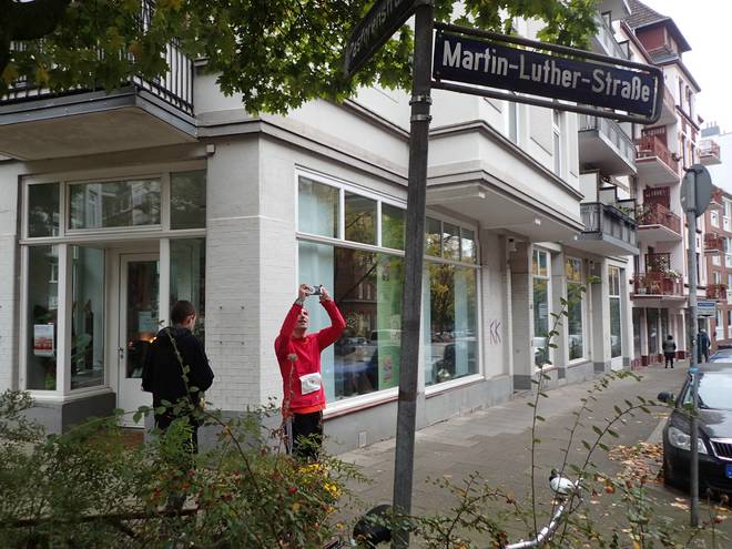 Martin-Luther-Straße 14.19 Uhr / Km 42,6 Das Schild hatte ich zuvor noch nie beachtet. An dem Tag war es eine Hauptattraktion. |