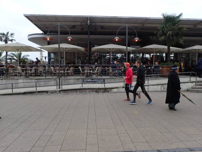 Elbpark Entenwerder 13.40 Uhr / Km 36,7 Im Juli ließ der Hamburger Senat hier G20-Terroristen nächtigen, damit die es nicht zu weit zu ihren Verwüstungs-Feldzügen durch die Stadt hatten. Ein geplanter Marathons rund um das Terror-Camp fand nicht statt. |