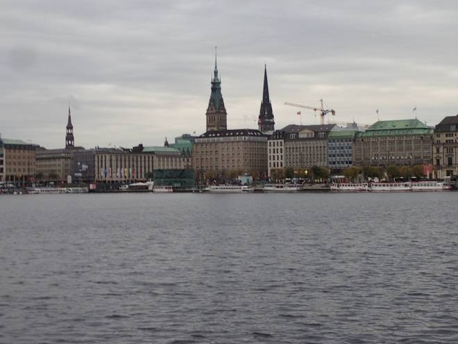 Binnenalster 14.30 Uhr / Km 44,3 Hauptkirche St. Katharinen, Rathaus und das Mahnmal St. Nikolai. |