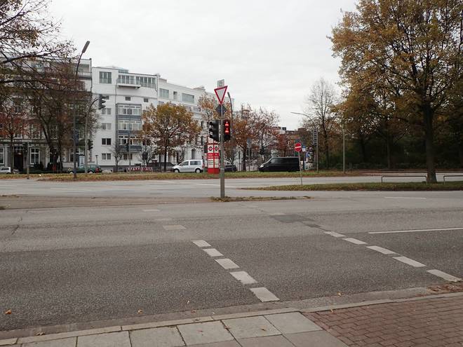 Ludwig-Erhardt-Straße Herrengraben 14.20 Uhr / Km 42,7 Okay... hier kamen wir nicht so einfach bei Rot rüber. Mein erster Entwurf des GPS-Tracks verlief unter dieser Straße hindurch und ohne Ampel, aber hier war kürzer. Also flog mein Umweg raus. |
