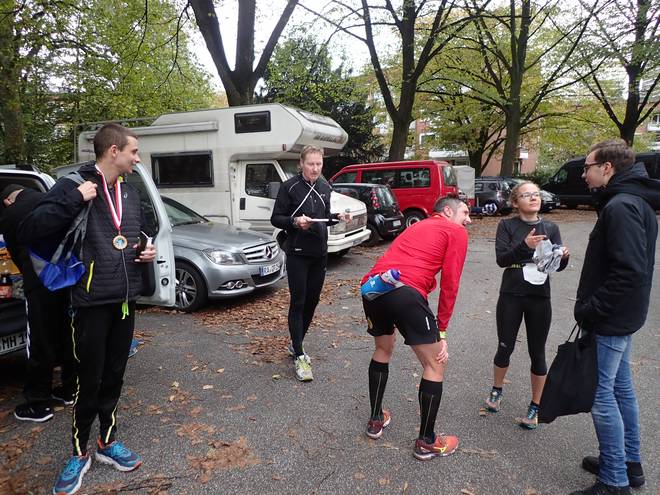 Bei der St. Gertrud Kirche 14.56 Uhr Thorsten kam zwar ein wenig später, stand in der Ergebnis-Liste aber auch mit 4:55:06 Stunden. Offenbar hatten die anderen Drei vor dem Ziel auf ihn gewartet. |