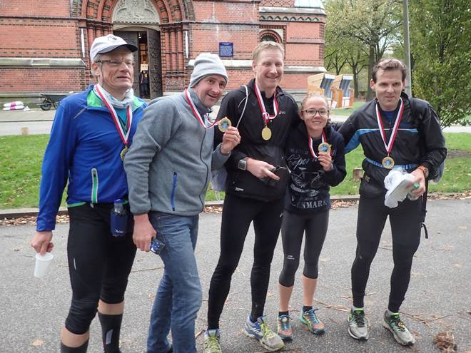 Bei der St. Gertrud Kirche 14.48 Uhr / Km 47,07 Rico, Tobias und ich kamen verabredungsgemäß zeitgleich ins Ziel. So lagen wir alle drei auf Platz 1 und gewannen jeder die eigene Altersklasse. |