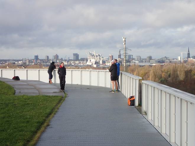 Energieberg Georgswerder 12.09 Uhr Anmarsch zum Energieberg. Eigentlich ist die Anlage nur von April bis Oktober für die Öffentlichkeit zugänglich, aber für Christian und seinen Marathon macht man schon mal eine Ausnahme. |