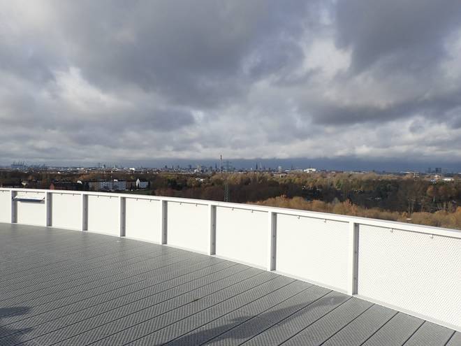 Energieberg Georgswerder 12.22 Uhr Oben vom Horizontweg aus hat man eine tolle Aussicht auf die Stadt. Für Details ist sie zwar etwas weit weg, aber trotzdem ist der Ausblick toll. |