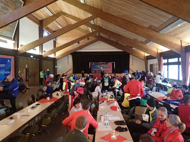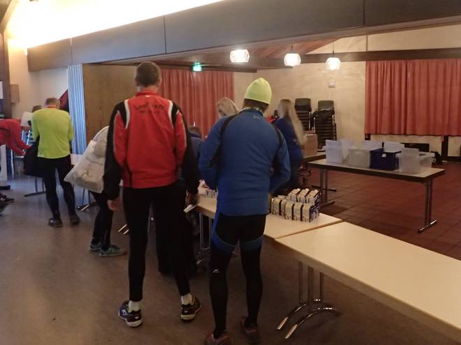 Twistesee-Halle 9.27 Uhr Startnummer abgeholt und dann umgezogen. Die Zeit bis zum Start kann schnell vergehen. |