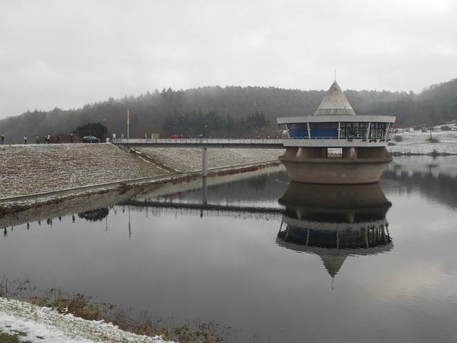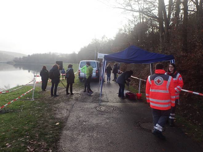 Twistetalsperre 10.29 Uhr Bevor es kalt wurde kam schon der Countdown und dann pünktlich der Start. |