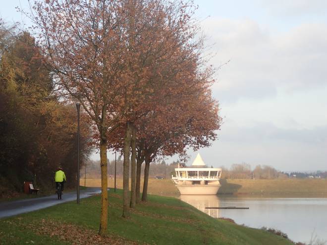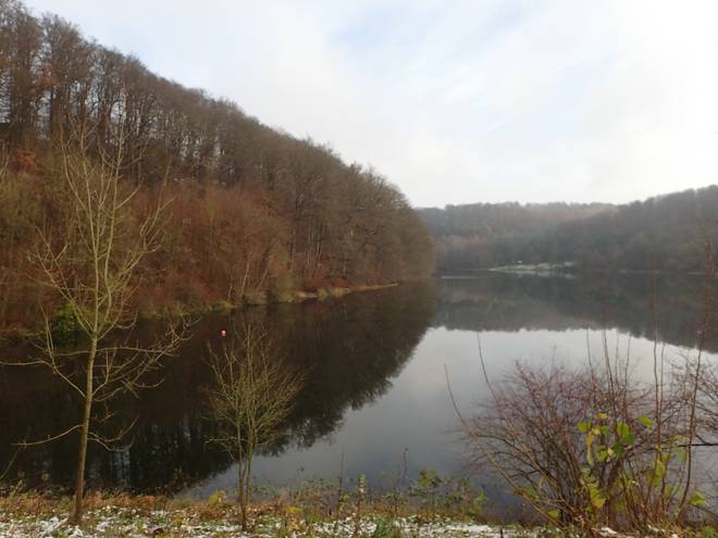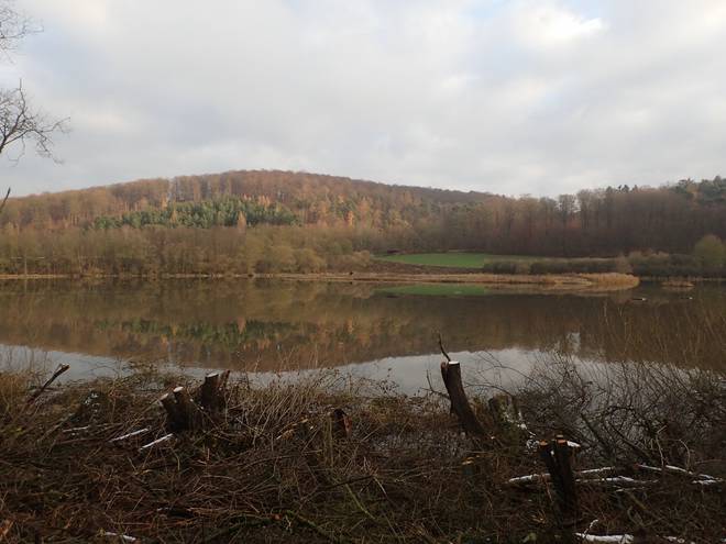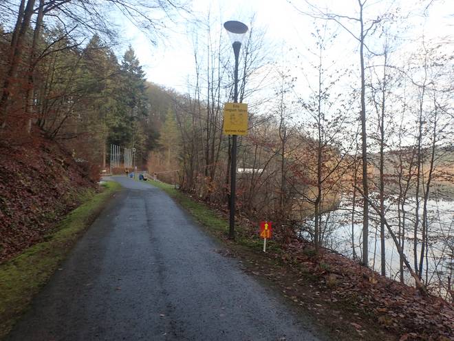 An dem Gausegrunde Twistesee 14.32 Uhr / Km 39,7 Dieser eher herbstliche Farbspektakel hatte doch auch was. Es muß nicht immer Schnee sein. |