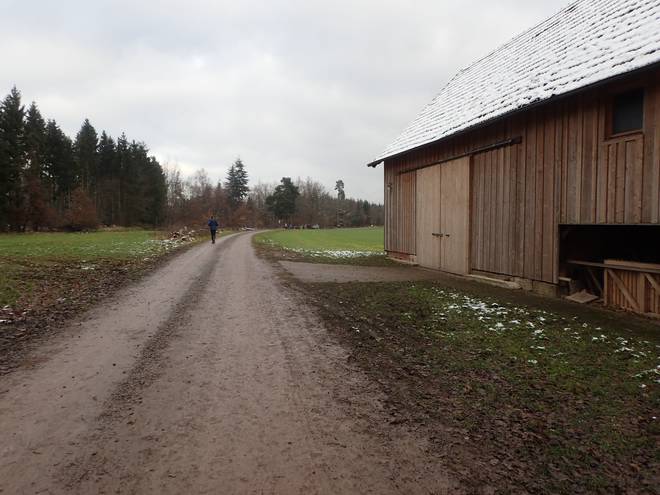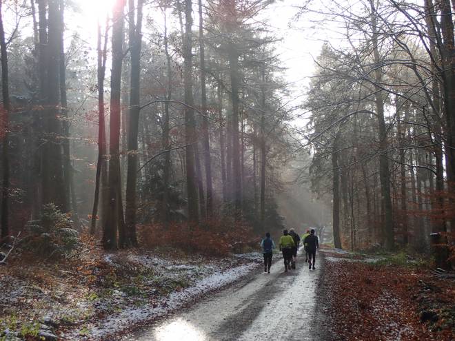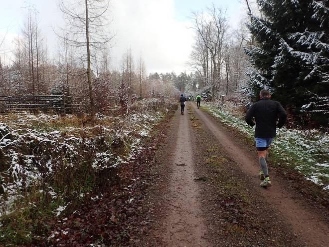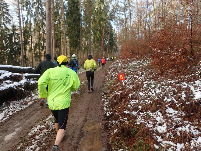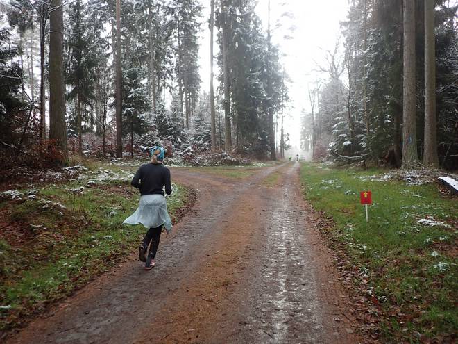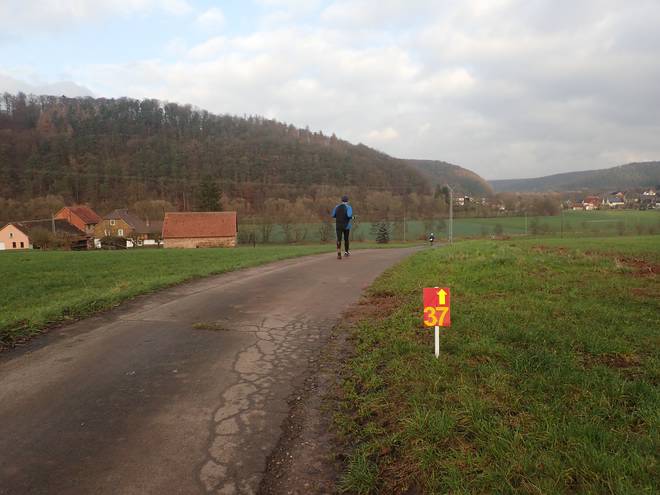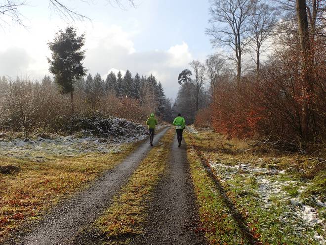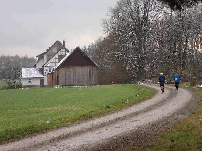 Stolzenberg 12.24 Uhr / Km 18,5 Die Strecke würde ich auch gerne mal mit ganz viel Schnee laufen. Das wäre bestimmt ein Traum. |