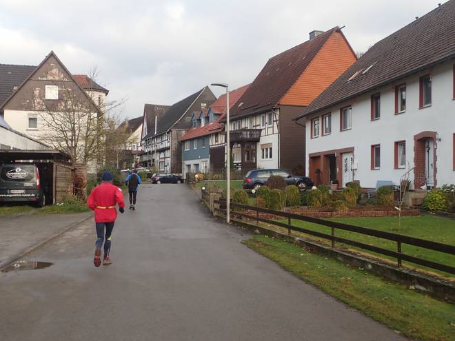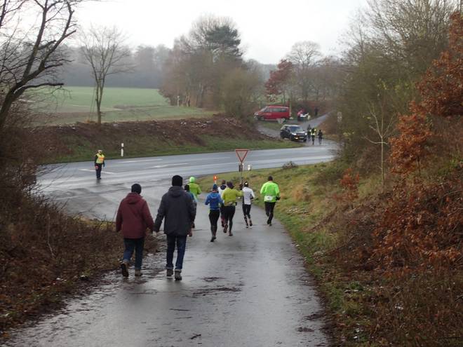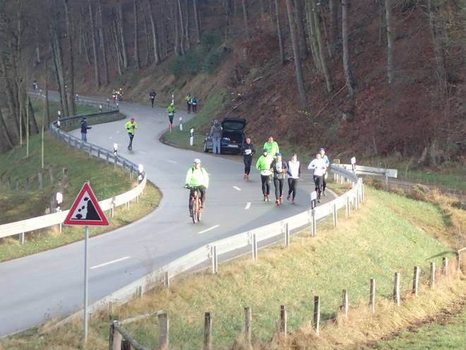 Kniebrecher Bilsteiner Straße Braunsen 14.23 Uhr / Km 38,1 Was für ein Name für eine Straße innerhalb einer Marathon-Strecke. |