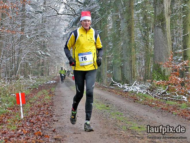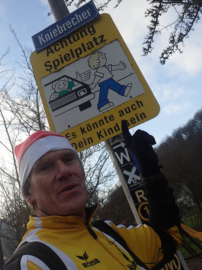 Lisbethstein 11.33 Uhr / Km 10,2 Weihnachtsfrauen gab es auch auf der Strecke. Sogar sehr gut gelaunte. |
