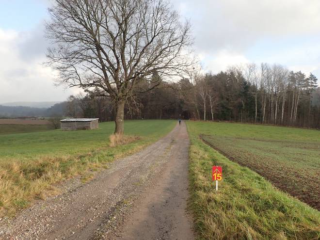 Stolzenberg 12.11 Uhr / Km 16,6 Wir machten uns nun an die stärkste und auch längste Steigung des Kurses. Die wanderte ich natürlich. |