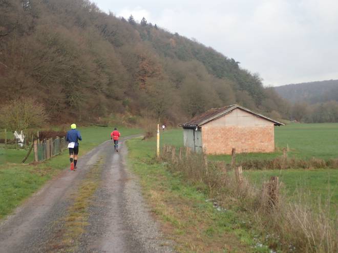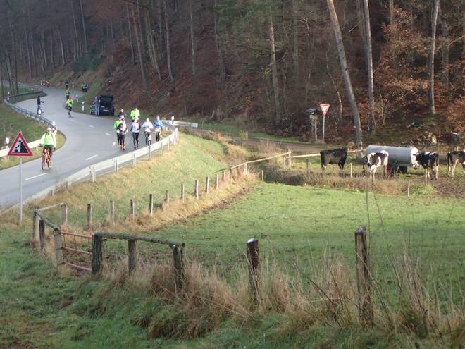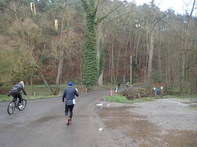 Wilhelm-Kaiser-Weg 13.09 Uhr / Km 25,7 Joe Kelbel kam mir hier entgegen. Mit knapp vier Kilometer Rückstand. Das Foto von mir tauchte leider nirgendwo auf. |