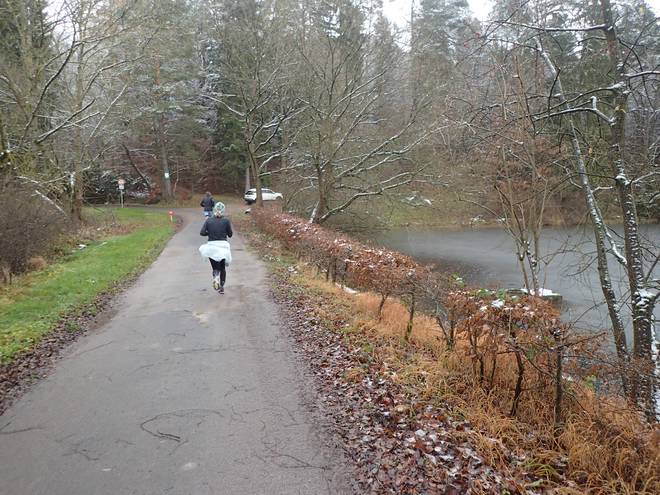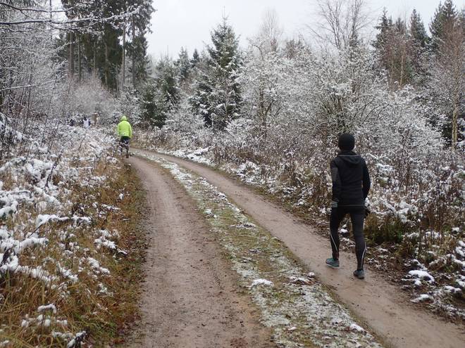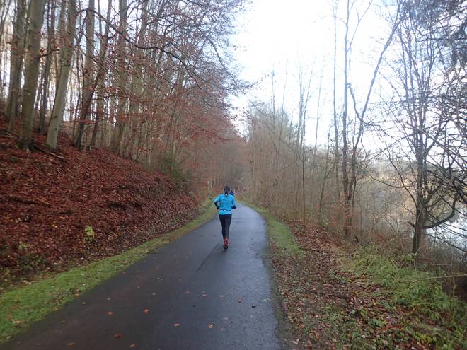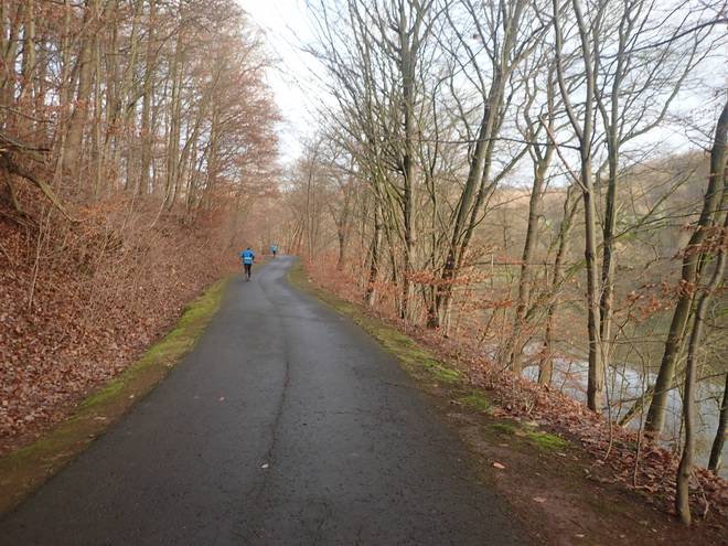 Twistesee 10.37 Uhr / Km 1,2 Die Strecke war problemlos zu laufen. Von Glätte keine Spur. |