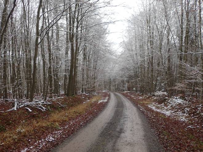 Alte Wildunger Straße Langenwald Teufelskopf 13.53 Uhr / Km 33,0 Je weiter man runter kam, desto weniger Schnee lag auf den Bäumen. |