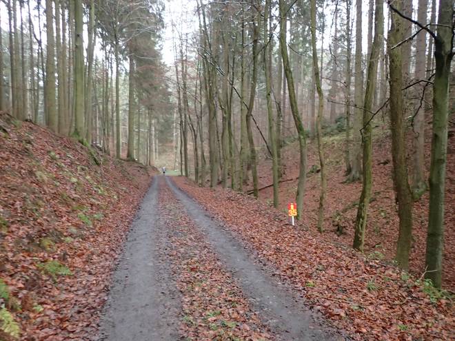 Papenberg Im langen Grund 14.02 Uhr / Km 34,5 Etwas mehr als drei lange Kilometer ging es nun fast nur bergab und teilweise auch recht heftig. Das kann ich nun gar nicht leiden. |
