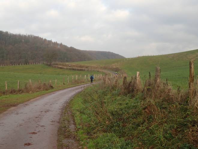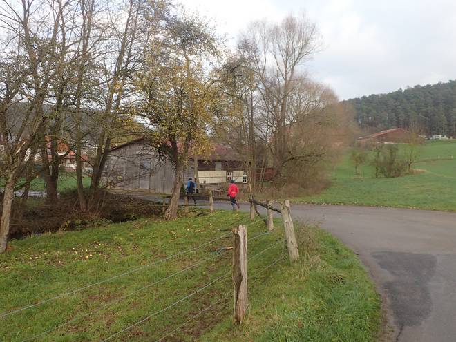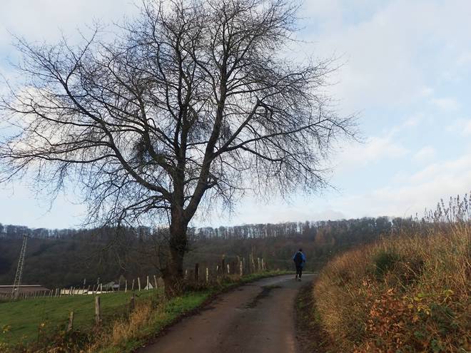 Halsberg 12.51 Uhr / Km 23,0 2012 war ich hier komplett eingebrochen und machte bald Gehpausen, 2014 traf ich auf einen aggressiven Köter, dieses Mal war es einfach nur schön. |