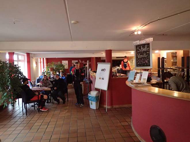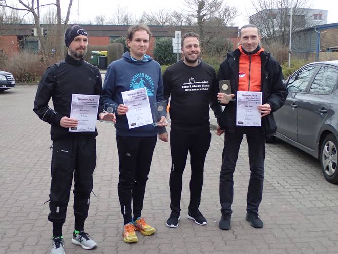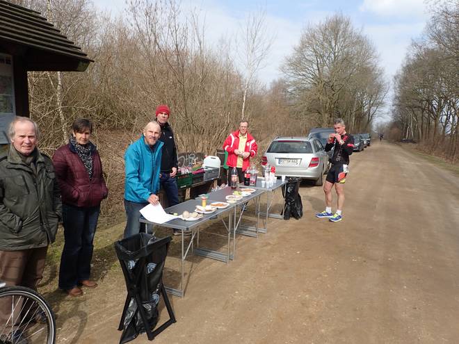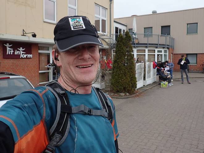 Krummesse 10.38 Uhr / Km 10,8 Auf 61 Kilometern gab es drei Verpflegungsstände. Wobei man den ersten (hier) und den zweiten sowohl auf dem Hin- aus auch auf dem Rückweg passierte. Machte also fünfmal Verpflegung. Da sollte man sich für den Weg dazwischen etwas zu trinken mitnehmen. Darum lief auch fast jeder mit Rucksack. |