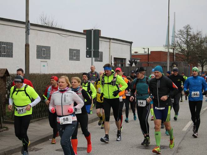 Stecknitzstraße 9.47 Uhr / Km 2,6 Andererseits liefen noch so etliche erfahrene Ultraläufer hinter mir. Vielleicht war ich doch nicht so langsam. |