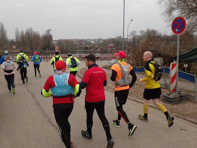 13.13 Uhr / Km 34,3 Auch mit meinem gemäßigten Tempo sammelte ich ein paar Läufer ein. |