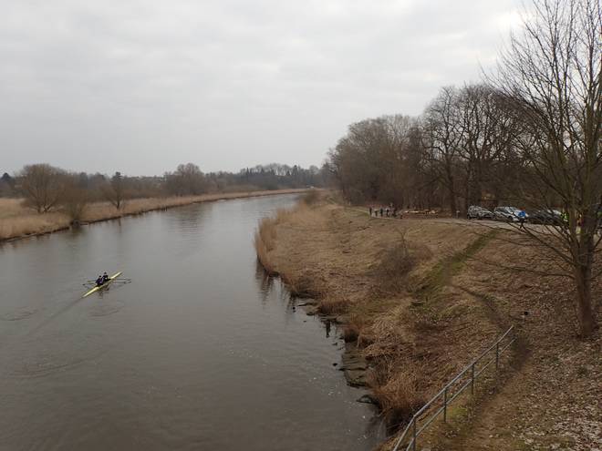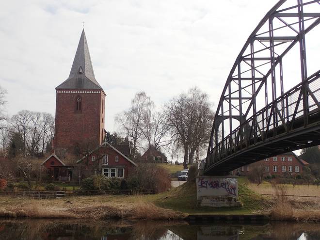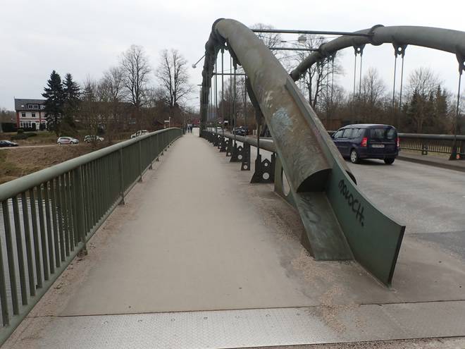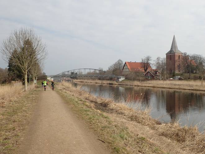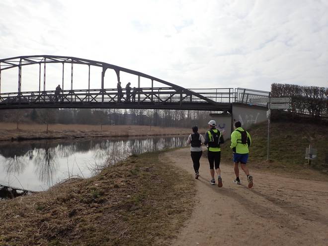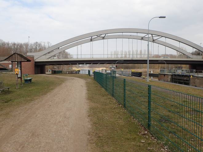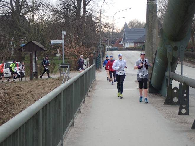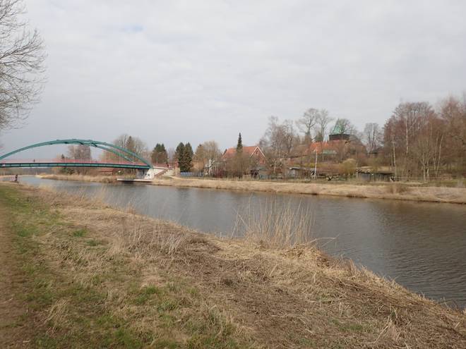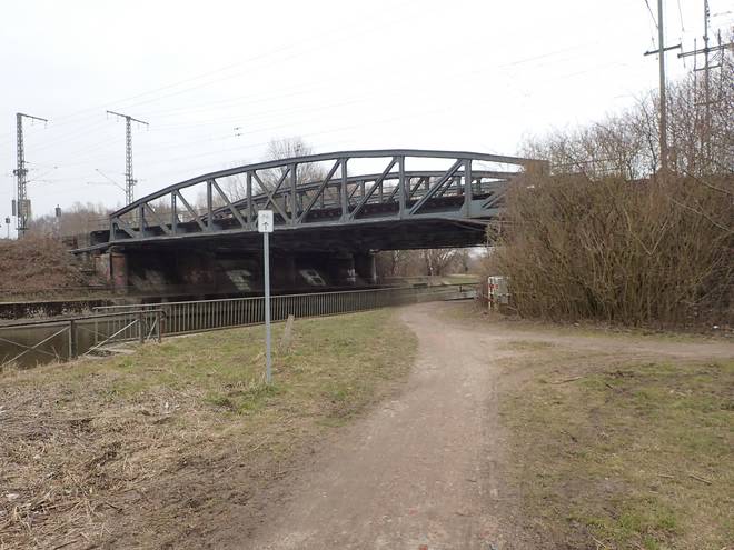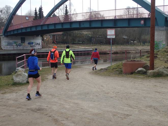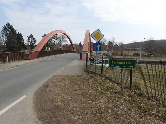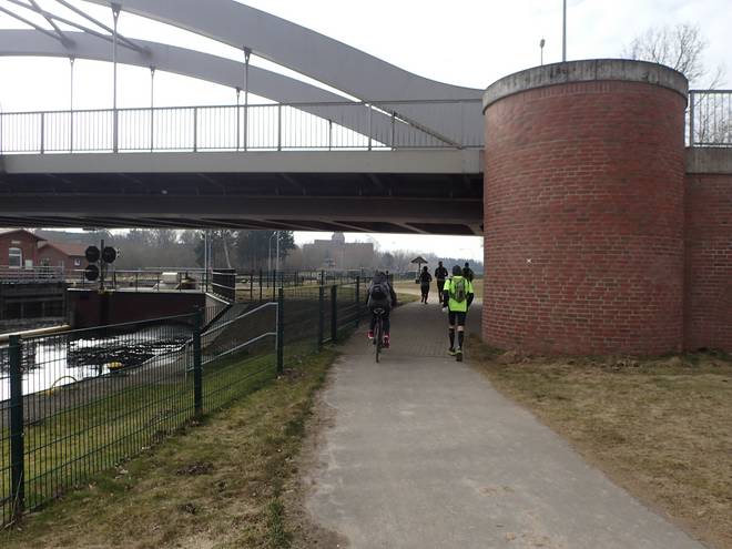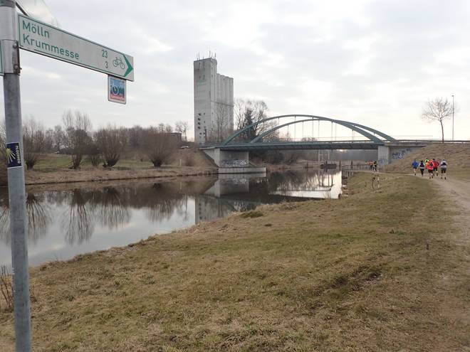 Stecknitzstraße 9.47 Uhr / Km 2,6 Es war nicht nur flach. Hier ging es über eine Brücke auf die andere Kanalseite. |