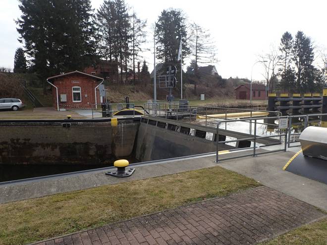 Schleuse Behlendorf 13.59 Uhr / Km 42,6 Nach und nach arbeite ich die Schleusen des Hinweges in umgekehrter Reihenfolge ab. |