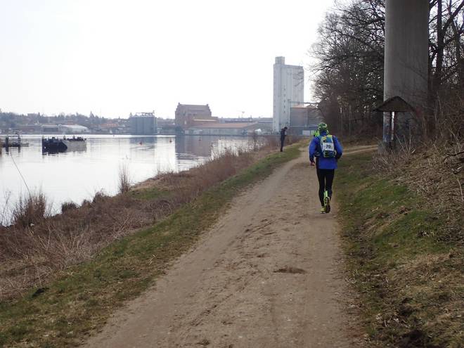 9.56 Uhr / Km 4,1 Kalt war es. Gerade mal 5°C zum Start, die sich gerade bei Gegenwind noch viel kälter anfühlten. Und wegen meines Rucksacks lief ich ohne Jacke. Ganz böser Fehler. |