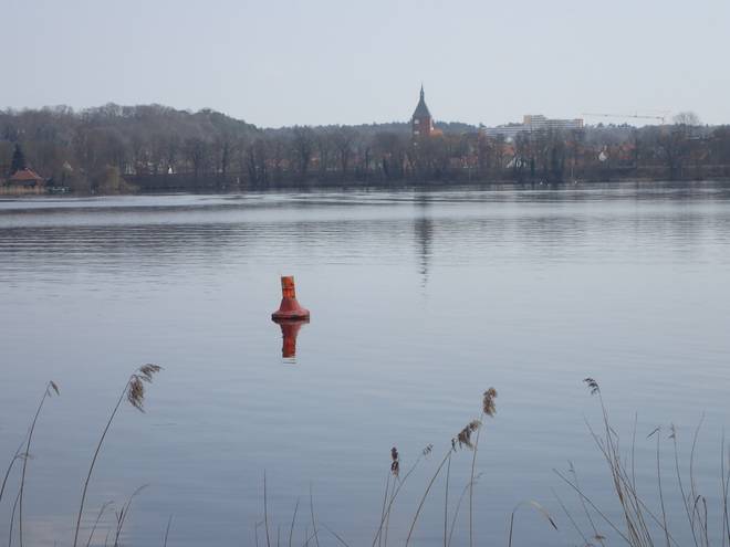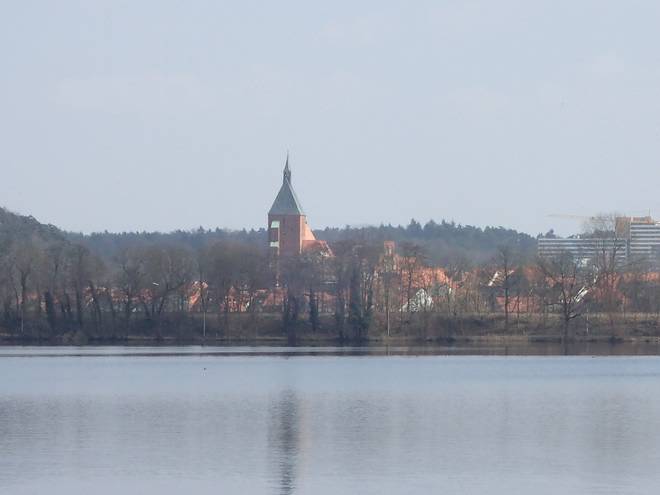 Ziegelsee Mölln 12.56 Uhr / Km 31,4 Ehe es zurück in den nicht so abwechslungsreichen Kanal-Abschnitt ging, guckte ich mir noch etwas Mölln aus der Entfernung an. |