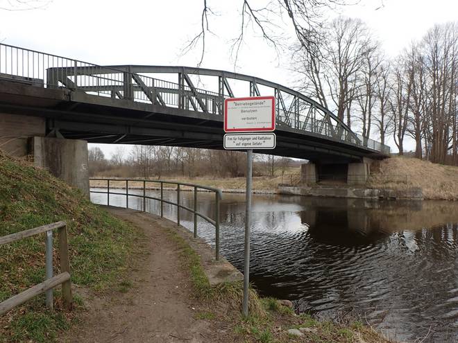 Neu-Lankau 12.02 Uhr / Km 23,7 Über die Brücke ging es nicht rüber, aber nachdem wir die meisten Brücken unterliefen, war gerade dieses Schild hier vorne ein erstmaliger Anblick. |