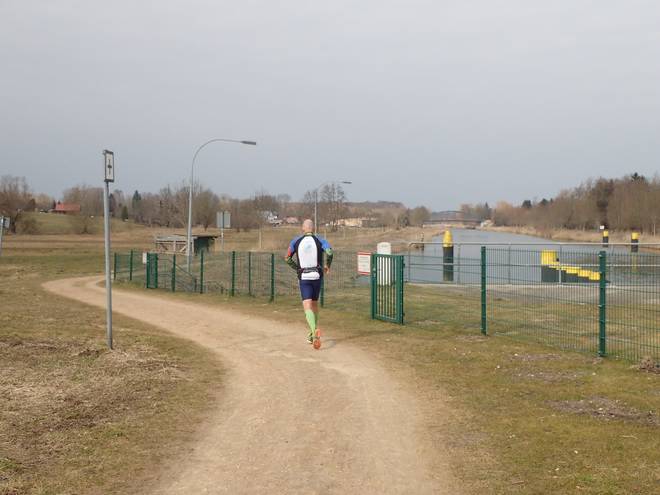 Schleuse Büssau 15.20 Uhr / Km 55,7 Im Grunde war die Zielzeit ja egal. Ich lief schneller und besser als geplant. Was konnte ich für eine längere Strecke als ausgeschrieben? Typisch ich hatte ich aber auch geradezu panische Angst vor einer 6:30:10 Stunden im Ziel. Da kam ich nicht aus meiner Haut. |